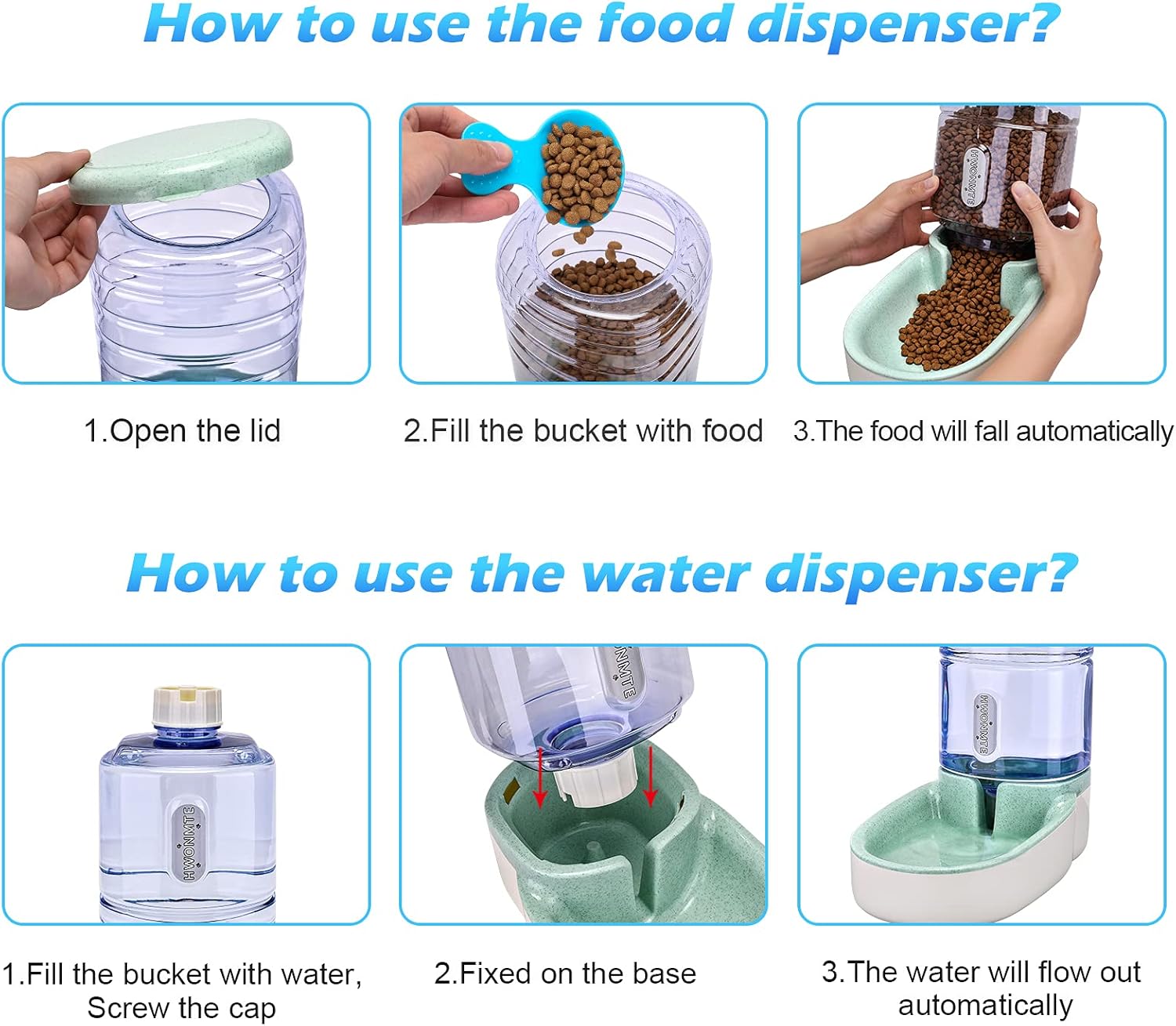- Dog Cat Feeder and Water Dispenser: automatic cat feeder*1, water dispenser* 1. food feeder and waterer set suitable for small and medium dogs or cats.