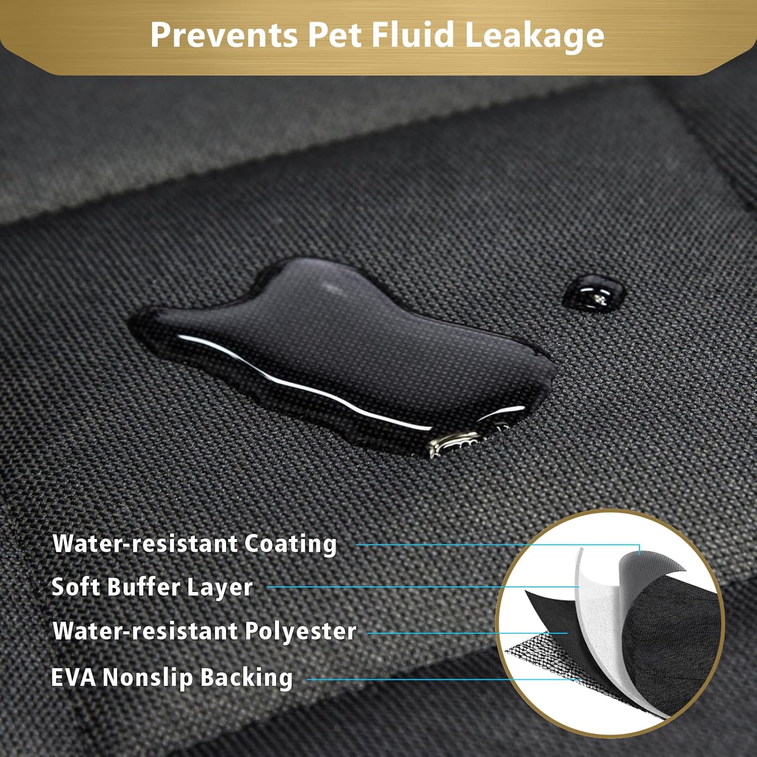 Water Resistant Cargo Liner: 4 water-resistant layers quilted, WATER RESISTANT and protects your car seat from pet dander, hair, spills, odors, mud, and water; Easy to clean just by wiping away dirt or vacuuming, washable. Tips: If there's a pee accident, please clean immediately.